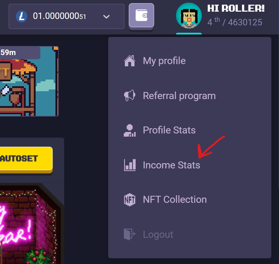 Then just press on the **“**[<mark style="color:green;">Income Stats</mark>](https://rollercoin.com/profile/income-stats)**”** button.